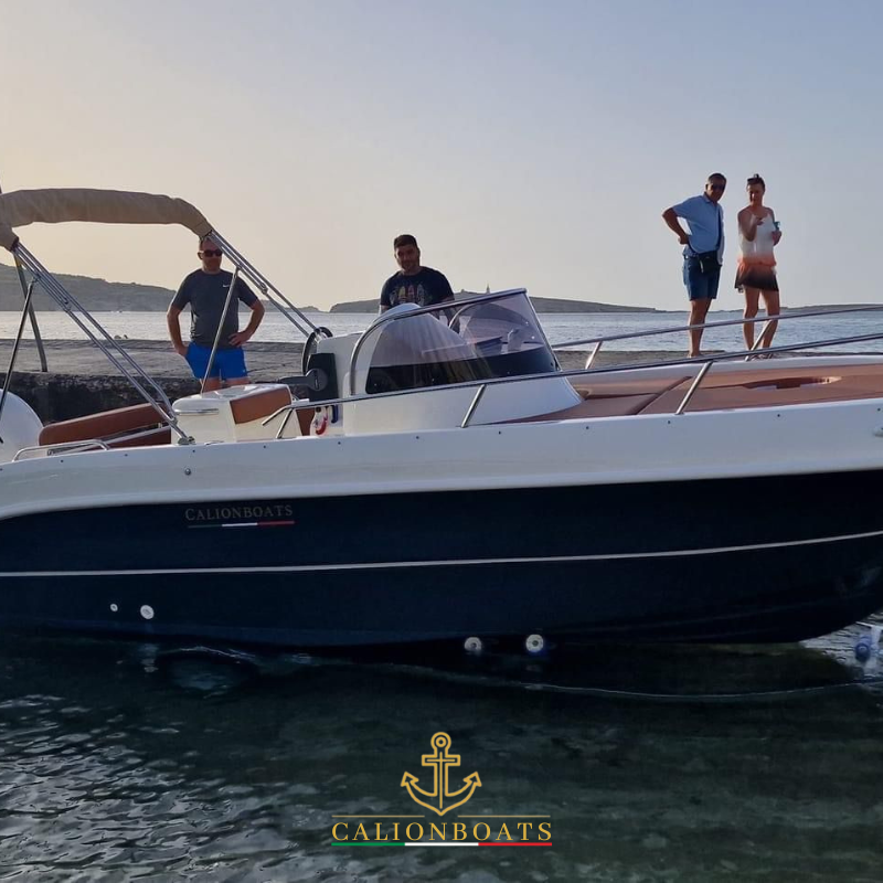 La Calionboats 21,50 è un'imbarcazione veloce ed elegante. La sua forte vocazione sportiva nasconde una piccola cabina per ospitare due passeggeri. Divertimento alla guida e sicurezza sono garantite dall'innovativa carena con la prua svasata che conferisce al natante un'eccezionale stabilità in navigazione, anche in condizioni di mare difficile.